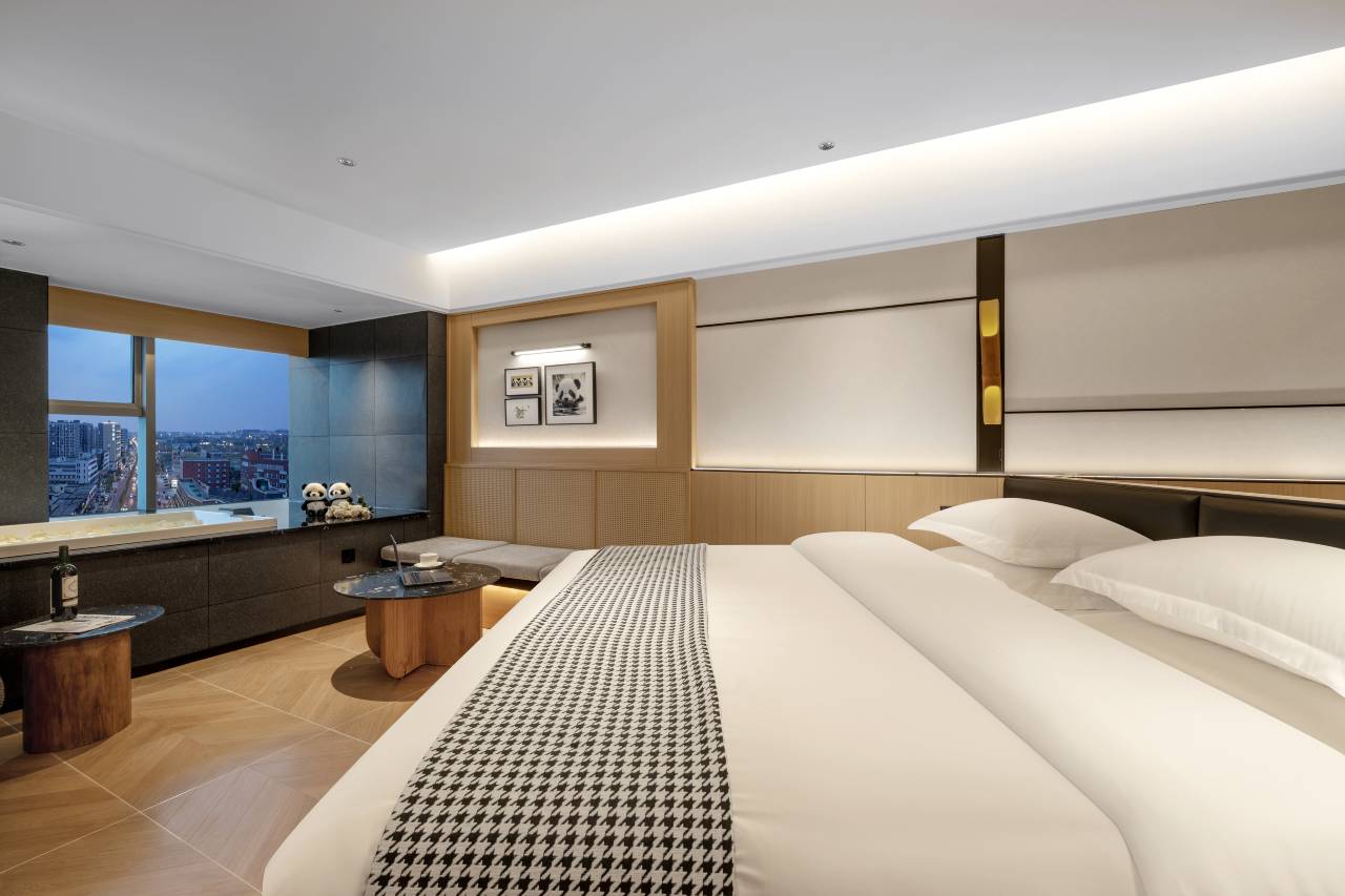 酒店以云端视野与蜀地文化交融的姿态,重新定义旅居体验。酒店地处红牌楼商圈核心,距离武侯祠,锦里,杜甫草堂只需10分钟车程.17分钟畅达双流机场,地铁直达春熙路太古里,3号线可通熊猫基地,成都动物园,地铁直达成都东站,双流机场。步行5分钟可达商场小吃街。楼下直达红星美凯龙,汽配城,商旅出行不二选择。酒店以“茶文化、熊猫、蜀绣、火锅与麻将五大主题凝练于空间细节。15层高空全景落地窗将城市天际线纳入客房,定制床垫、全屋智能、巨幕投影、超大浴缸、特色文化主题、24小时管家服务共创舒适旅居体验,欢迎您的到来。