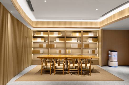 2.酒店设计是现代中性风与朴适生活理念的交融,空间中随手可触的竹、松、木及大面积留白,为穿梭于纷繁城市狭隙中的旅人铺展开一方悠然静土。