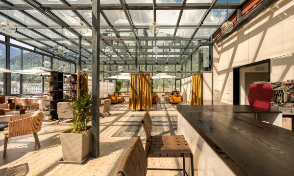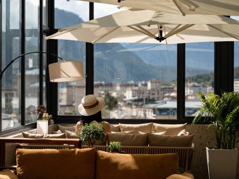 顶楼阳光房餐厅可以直面雪山