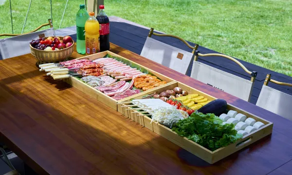 这家帐篷酒店的“细节控”属性真的戳到我了!从进门开始,工作人员会主动帮你拿行李,大堂有免费的茶水提供;帐篷里的床垫不是那种软塌塌的,睡起来特别舒服,枕头还有一个记忆枕,超级舒服,对我这种颈椎不好的人太友好;卫浴是干湿分离的,还放了防滑垫和地垫,连洗漱台都擦得一尘不染,没有一点水渍;房间茶水吧还有免费的矿泉水,都是影视城logo的,细节做得超到位。晚上躺在床上,没有城市的光污染,周边环境安静,非常舒服;早上被鸟鸣叫醒,拉开窗帘就是满眼的绿色,空气非常清新,心情瞬间变好。早餐的种类很丰富,味道超赞。这种注重细节的酒店,住得特别放心,已经成为我的“宝藏度假地”了。唯一的遗憾就是梦泉谷开始营业时间太晚、结束的太早,跟原先安排的行程有冲突,没能体验,下次来的时候一定要好好体验一番。