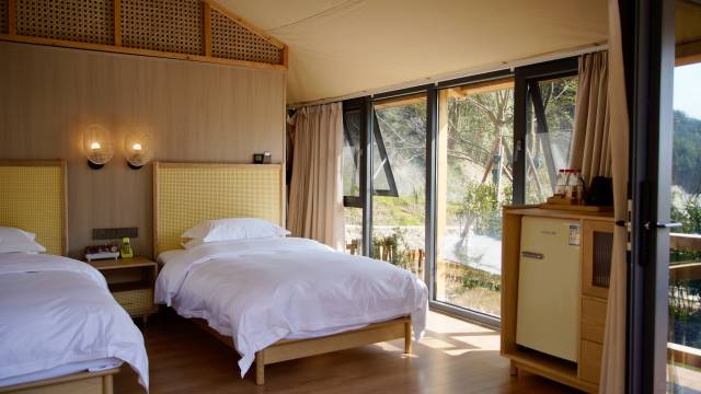 这次入住的帐篷酒店体验超棒!房间带的滑梯孩子玩到停不下来,园区里的大型游乐设施设计精巧又有趣,娃撒欢玩了好久。早餐也很丰富,酒店藏在山林间,满眼绿意,环境清幽又优美,不管是亲子休闲还是亲近自然都超合适,下次还来!