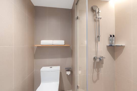 私人浴室配备全新一次性洗浴用品和吹风机。