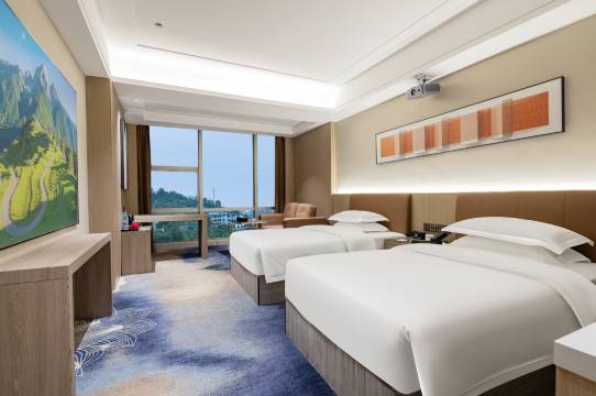 【酒店概况与地理位置】 众尚国际大酒店是一家精心设计与建造的高端综合性酒店。酒店总建筑面积达28,000平方米,宏伟大气。其地理位置优越,坐落于恩施市土桥大道10号(湖北省第二地质大队旁),紧邻恩施州民大医院,毗邻恩施著名的旅游地标——土家女儿城。 酒店交通极具便利性,距离恩施许家坪机场仅约10分钟车程,距离恩施高铁站约20分钟车程,无论是商务出差还是旅游度假,皆可轻松抵达。 【奢华大堂与智能服务】 步入酒店,映入眼帘的是挑高设计的豪华大堂,地面铺设天然大理石,顶部配以璀璨的水晶吊灯与现代艺术灯饰,彰显出“新中式与现代轻奢”融合的非凡气度。大堂内设有雅致的钢琴演奏区、舒适的商务休息区,并配备了智能服务机器人,为宾客提供引领、送物等高科技无接触服务,尽显尊贵与科技感。 【多样化客房与舒适体验】 酒店拥有各类精致客房,致力于为宾客打造完美的睡眠体验: 智能化体验:大部分房型(如商务房、高级商务房、巨幕房等)均配备全屋语音智控系统,无需动手即可控制灯光、窗帘及电器;同时提供手机投屏功能,满足现代宾客的娱乐需求。 房型丰富: 商务/标准系列:宽敞明亮,办公桌椅一应俱全,适合商旅人士。 巨幕影音系列:配备高清投影与震撼音响,更有慕思床垫加持,足不出户即可享受私密影院级体验。 高级商务/行政系列:部分房型配备舒适浴缸、小冰箱及静心舒眠系统,提供更深层次的放松。 亲子主题房:专为家庭出游设计,内设儿童帐篷、玩具用品及一大两小床铺配置,温馨有趣。 尊享行政套房:拥有独立会客厅,56㎡超大空间,尽享奢华私密。 【餐饮美食与休闲品茗】 酒店餐饮设施完善,环境典雅: 自助早餐厅:明亮整洁,提供丰富的中西式营养早餐,唤醒您的一天。 中餐包厢:设有装修考究的私人宴请包厢,配备超大圆桌,适合商务宴请及家庭聚餐。 茶室与休闲区:专设静谧茶室与大堂吧,不仅适合品茗会友,也是商务洽谈的理想场所。 【会议与商务设施】 酒店是举办各类会议与活动的理想之地,拥有多功能会议中心: 配备超大高清LED显示屏及专业音响设备。 提供多种规格的会议室,无论是大型培训、企业年会、产品发布会还是商务研讨,均能提供灵活的场地布局与专业的会务服务。 【康体娱乐与配套】 为了满足宾客的健康生活需求,酒店设有专业健身房,配备跑步机及力量训练器材,四周镜面设计让运动更加舒心。此外,酒店配套有大型停车场,并在户外及公共区域设有完备的安保设施,让您的入住无后顾之忧。 众尚国际大酒店,以卓越的品质、智能的设施与贴心的服务,期待成为您恩施之行的温馨港湾。