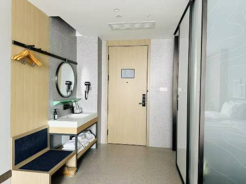 新开业的酒店,一进大厅就有高级感,还香香的,前台服务人员笑容服务,打开房间门小度就和你打招呼,全是智能声控的好喜欢,床品软软的,卫生很干净,对于我是一个新手司机,最怕的就是停车,他们家门口很多停车位啊,必须好评。