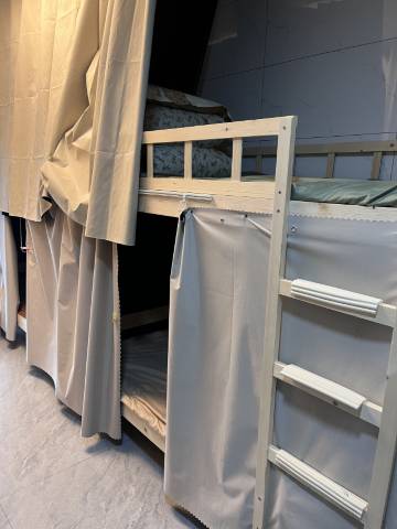 应该是一套房子改的青旅,房间很干净,性价比高,楼下吃饭、坐车方便
