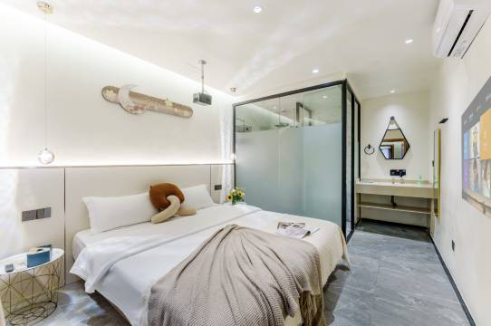 非常热情的民宿房东,整个入住过程愉快且放心, 房间布局很雅致, 各类设施齐全,卫生更是细致,房东也是有问必答,非常满 意的一次入住体验!民宿房间整洁干净,设施一应俱全,完~美的一天从这里开 始!交通便利,出行方便,房间采光不错,房间非常干净,洗完澡躺床上看电影好舒服!服务很到位,