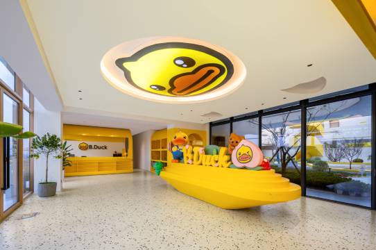 原舍B.Duck小黄鸭亲子度假村是以国际知名IP形象“B.Duck小黄鸭”为主题打造的沉浸式亲子度假目的地,集亲子互动、休闲娱乐、商务会议于一体。我们以萌趣设计、贴心服务和多元体验为核心,致力于为家庭宾客创造欢乐回忆,同时为商务活动提供专业高效的会务支持。客房均以B.Duck小黄鸭元素为主题设计,配备卡通主题床品、卫浴用品及儿童专属拖鞋,部分房型含亲子滑梯趣味设施。提供儿童营养套餐、卡通造型点心及亲子DIY早餐,餐厅内设B.Duck人偶互动合影环节。度假村也会推出丰富的亲子互动课程,由专业导师带领,让孩子在玩乐中学习。从大堂到客房,从餐具到活动,B.Duck元素贯穿全程,打造独特记忆点。以童心连接世界,让每一次停留都成为充满欢笑与收获的旅程!