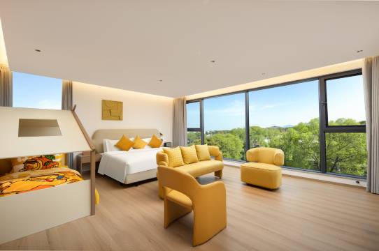 设施比较新,它的床垫也特别的舒服,睡一觉腰酸腿疼都没有了。房间的颜色也很治愈,黄色明亮,再加上主题元素,带亲子是最佳选择。