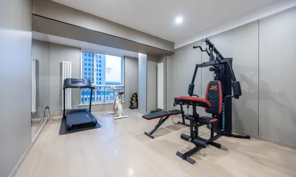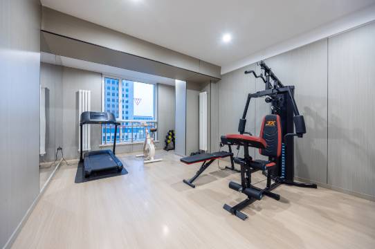 💪 24小时健身房设备超全,清晨对着落地窗跑步,大学城朝气蓬勃的景色尽收眼底。晚上练瑜伽时还有智能导引屏,私教级体验。