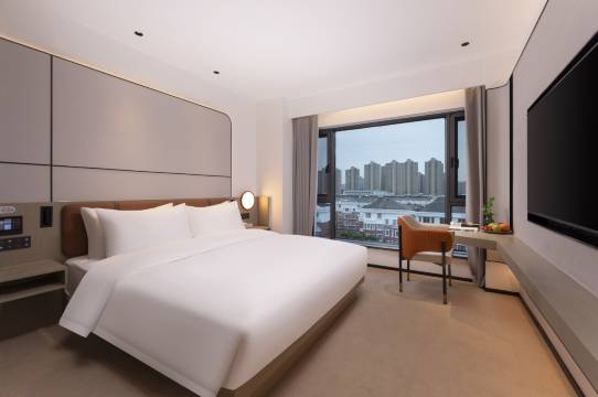非常满意的酒店,房间很大,很干净,全屋智能化,设施设备齐全,惊喜的是落地窗,视野很好,早餐也非常的用心,种类很多,有现下的面 粉丝 馄饨,一楼有清吧,洗衣服和健身房,很不错,周边环境很不错,前台服务态度很棒。