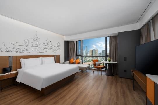 服务:服务周到,外卖机器人送,楼下大堂还有休息的地方,负二楼有刷房卡可进的健身房和自助洗衣机和烘干机,早餐餐厅位于15楼,风景好,味道也很不错,同一楼层还是当地比较出名的瓶子饭店,晚上不想出酒店可以在这里解决吃饭