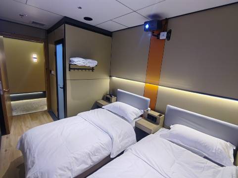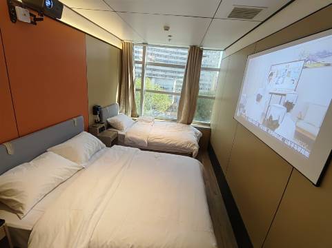 房间很干净 被子睡着很舒服柔软 而且每个房间都有安装独立的WiFi 房间还有投影 白天出去玩 晚上回酒店可以跟朋友躺床上看投影