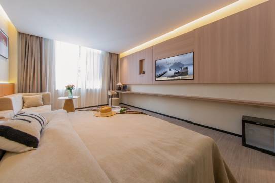 • 房间配备大屏电视、免费矿泉水、茶具,还有充足的储物空间,出行行李再多也能轻松收纳;