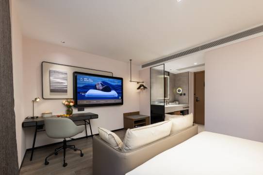 房间清洁舒适,无异味,床上用品舒适,宽敞明亮,小度智能化是亮点,淋浴花洒水量大,水温也好,性价比高,非常值得推荐,前台服务热心亲切