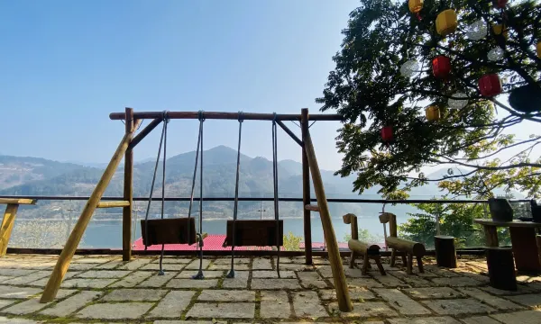民宿是建在半山坡上的,四周环绕着青山和绿水~装修非常小清新,一看就是有用心设计过~坐在阳台的秋千上,看着对面的山、面前的江,静静的发呆。过年期间,小村人不多,非常安静~偶尔一列火车经过,让宁静的小村,又不失活力~