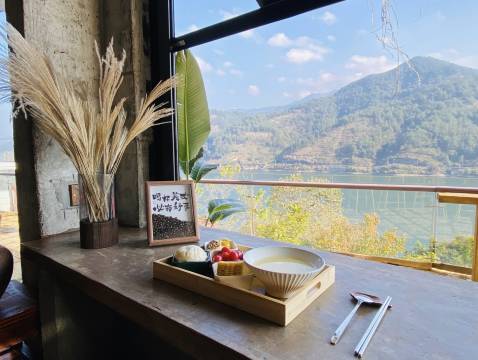 吹着风欣赏着江面波光粼粼,吃着早饭,再喝口茶!绝了~老板匠心独运的设计理念,赞不绝口👍