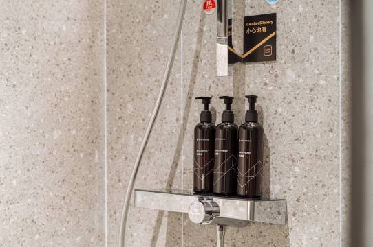 装修走简约风,没有花里胡哨,但胜在整洁——床品蓬松,睡一晚不闷汗;窗帘遮光性好,早上想睡懒觉也能实现;隔音比预想中好,临街房间也没被噪音打扰。浴室的玻璃、台面都擦得透亮,细节里藏着省心。 前台服务也很热情到位,下次来玩还会选这家店。