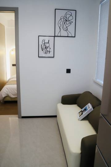 交通便利,位置好找,房东热情,非常不错的民宿,干净卫生,位置好,楼下旁边就是商场,房间楼层高,晚上站在阳台上就看见窗外的风景也直接能看到熊出没乐园晚上的夜景。房间里设施齐全,住着挺舒服的,而且房间隔音效果好,空间很大,特别是客厅上的那个劳伦斯沙发超级喜欢