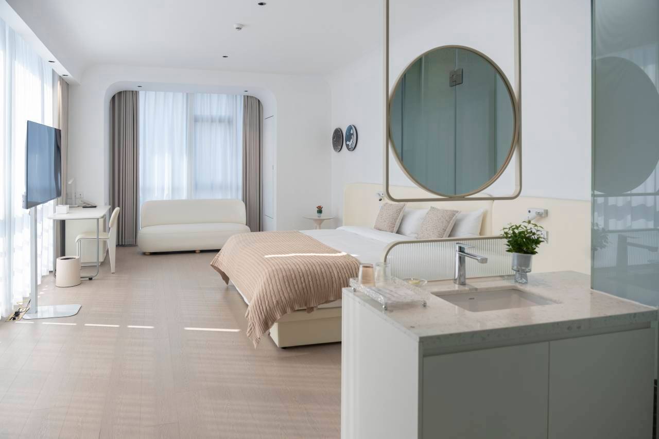 房间体验:设计将现代简约与山野气息完美融合,全屋智能系统超方便!床品居然是金可儿定制系列,躺下去像睡在云朵里。mini bar免费供应本地特色饮品,细节处见真心。