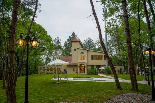 庄园是在城市的一个山丘上,对面就是独山,遥遥相望。闹中取静,地理位置属于保护林区,由于不能过度开发,进庄园的路比较狭窄,会车有些难度,还好我们没有开大车,就是普通轿车,加上老司机光环,没有什么难度。