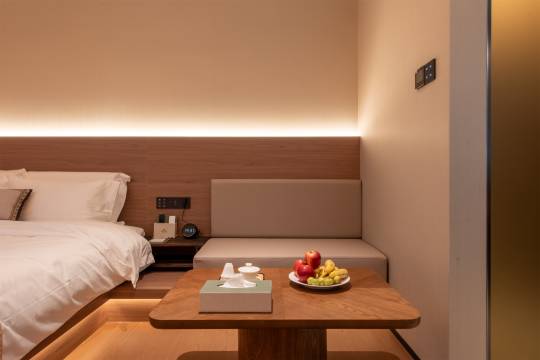 位位置优越,就在二马路里面,直接下楼就可以逛吃逛吃,房间整体是温馨的日系风格,干净,房间还有智能系统控制随时小度小度,卫生间马桶也是智能的,床垫很软很舒服,枕头也很贴心的备了一软一硬。工作人员有礼貌服务到位,下次还会选择。