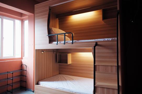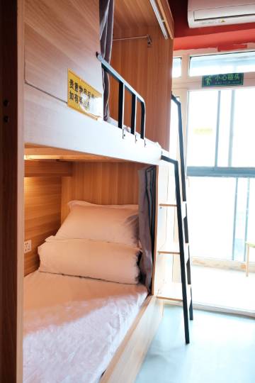 房间是上下铺,布置得简洁又温馨,隐私方面也贴心,有帘子能拉上,给自己营造小空间。卫生也说得过去,床品看着干净,住着还算舒坦🛏️