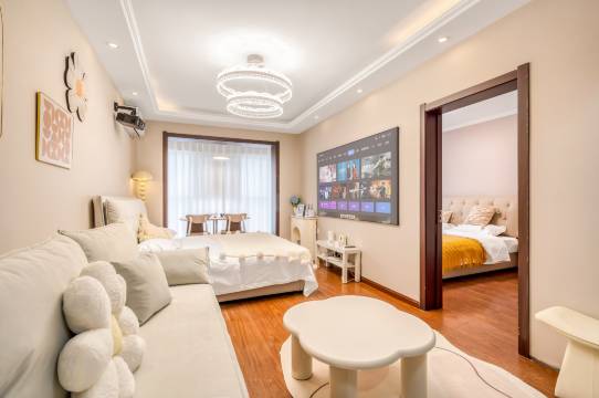 地铁站和商场旁边,吃饭、出行都方便。房间面积蛮大的,东西也很齐全,唯一不满意的就是床边上竟然没有灯的开关😇哦,对了,因为是公寓,大家要记得提前联系老板哦,不然不知道住哪,没有前台啥的,全自助入住。