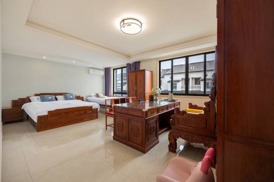 房间很大,干净整洁,配上红木家具,高级大气,又有家的感觉;卫生间干湿分离,智能马桶,老板很是用心;老板、老板娘对人很热情,早餐是老板娘自己做的,有蒸红薯、玉米、粽子、鸡蛋、白粥,自己做的酱黄瓜、酸笋很是爽口好吃,老板娘看我们喜欢吃还送了我们一瓶酸笋,很是贴心,住在这样的民宿就像住在自己的家里一样舒服,还会再去住。