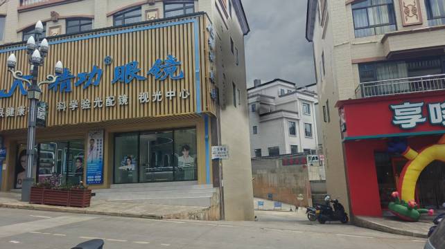 酒店是在一个小区里面,出了小区往右拐不远的地方就是菜市场,市场里买什么的都有 购物很方便,老板服务热情,酒店很干净。