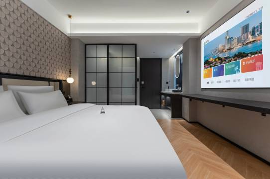来这边出差,新开的酒店各方面都不错,装修简约,房间干净卫生,有投影仪屏幕很大,比一般的连锁店性价比都高,挺好的,推荐~