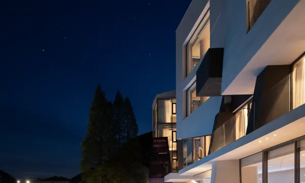 行车经过219省道,你不会错过路旁这座“大积木”——山川瘾·设计师建筑美宿。 这是著名建筑设计师沈墨在桐庐的代表作品,整体延续了他辨识度很高的个人风格:几何感十足,线条利落又天马行空,充满了现代感的同时明亮简约却又很好的融入周边和自然的环境中。