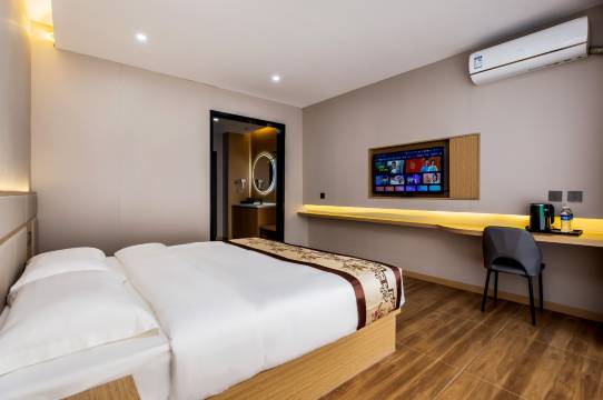 房间干净整洁,非常好,宽敞明亮,前台小姐姐服务态度非常好。而且楼下有停车位。 方便停车。出行方便。出行也很方便。