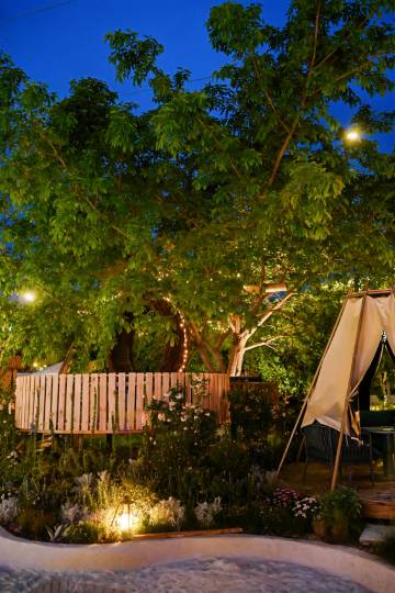 树屋设计的很特别!爬上楼梯钻进树屋,坐在上面喝个下午茶很舒服,而且拍照也很出片,体验感直接拉满!
