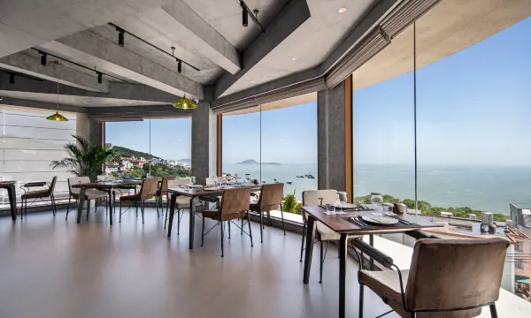 环境很美,民宿很大,餐厅和房间都能看到海景,很有设计感。