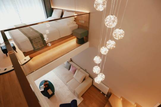 带孩子五一来旅游 正好赶上酒店新开业 家具用品都是新的 全屋智能 卫生间洗浴也是大品牌 智能马桶 越住越喜欢 双层的loft 还有一个榻榻米 非常适合带孩子的家庭 酒店位置也非常棒 距离东方水城两个路口 距离网红最美公路也只有一个路口 老板也非常热情第一天给送了大连的樱桃 前台的王经理服务也热情周到 希望酒店能一如既往的保持下去 以后暑假就来这里了 老板给第一批住户优惠哈 😄