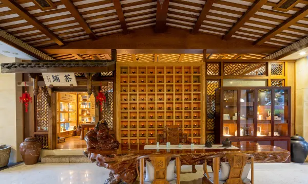 鹤影茶房——突出传统中式茶道文化,在品茗之际可感受独特天顶鱼池,仰观蓝天白云、群鱼游弋,聆听高山流水、琴歌萦绕。露台亭落——点缀于芳草奇树之间,落英缤纷,提供咖啡、果茶、香茗、小餐,尽显惬意小资格调。