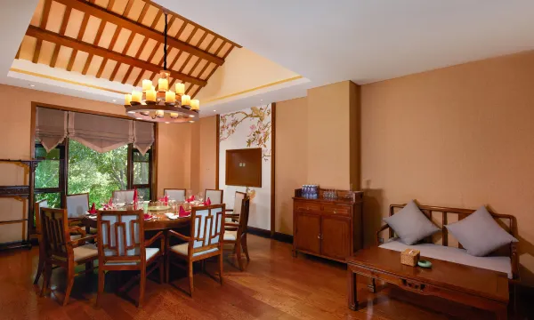酒店建筑属于中式园林四合院风格,从酒店正门到仅临邛海的后门,依次由四个不同功能的院落相连而成,其中包括一个主四合院以及围绕四个院落相建的、不同使用功能、不同观海效果的小院。