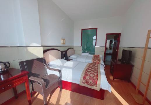 宾馆位于永昌路100号(泰龙商场北50米)有14间房:套房、标间、单间、三人间(标配空调),停车场,干净舒适,热情服务。