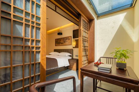 民宿隐匿于大同古城烟火街巷,青砖黛瓦与雕花木窗勾勒古韵外观,庭院绿植掩映,桌椅古朴,尽显东方雅韵。客房以宋氏美学风格为基础为基调搭配智能设施,定制床品营造惬意休憩空间,细节处融入大同地域元素。民宿的地理位置十分优越,出门就有接驳车,距离华严寺、九龙壁等著名景点仅需几分钟的车程,让您可以轻松游览古城的名胜古迹。民宿不仅是您旅途中的住宿之选,更是您感受大同古城魅力、体验晋韵文化的理想之地。在这里,您将度过一段难忘的美好时光,留下属于大同的珍贵回忆~