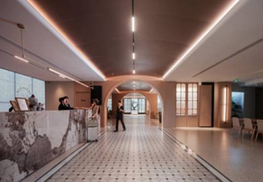 酒店停车方便!整体白色基调为主的清新风格!书吧咖啡吧!自助洗衣房!健身房也都有!旋转楼梯挺漂亮的!还不错