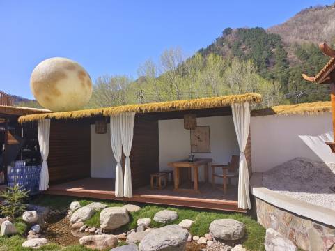 特别满意的一次出游,老板人特别的好,车接车送,我们两家人多,老板还把车借给我们用,给介绍的火锅也是非常的好吃,民宿位置也很好,离五爷庙很近。民宿环境很干净,智能马桶、还给准备了一次性马桶垫、洗脸巾、浴巾等,特别文艺的小院,挨着山,早上起来现在院子里,就能看到远处的风景,空气也特别清新!还有早餐,非常丰盛了,豆浆、小米粥、包子、鸡蛋、小菜很多种,下次再来一定还住这家!