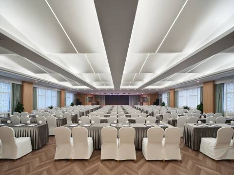 酒店主楼以东坡文化为主题,以东坡先生的《超然台记》为文化脉络,将东坡文化与现代酒店结合起来:每个房间有大小不一的“超然台”,不同的东坡先生经典名句,每条走廊顶部有不同的版画,装修设计无不体现质朴、自然、雅致的文化内涵,将“凡物旨有可观”贯穿其中;室内配备金可儿床垫、康乃馨床上用品等一线品牌,ITV高清点播系统等设施、设备,在雅致、舒适、安静的客房中品味东坡文化。