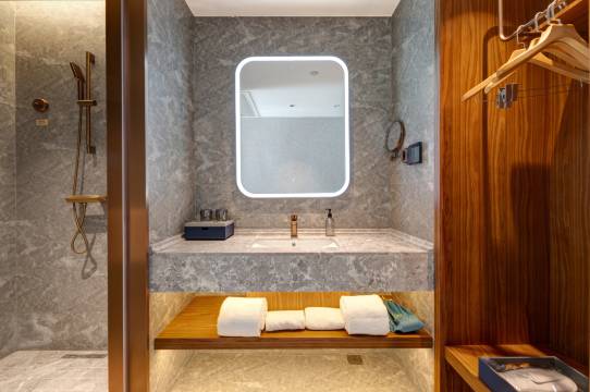 可能因为是新酒店的原因,白天没有入住的房间都开着门,应该是有助于散味的,难怪我们基本没有感觉到什么难闻的味道。顺便手伸进去拍了个其他房型的照片。