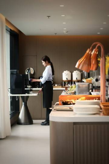 太赞了,用快捷酒店价格住出了五星的价值,首先床品,备品特别新且干净,这是我最最在意的,床单上那两道深深折痕看着就让人放心,就连一次性拖鞋都看出用心了,再有早餐想着可能就一碗面而已,结果不论就餐环境还是菜品都是大酒店的微缩版,但质量一点都没微缩,从水果饮品,从西餐面包沙拉香肠但中餐粥,面点,粉面都有,而且还有贵阳特有的脆哨,就餐环境也是干净清新,还有室外用餐区,不仅如此,整个酒店的服务人员素质极高,一看就受过良好的培训,彬彬有礼且不乏热情,从前台接待的小美女温暖可人到煮面小哥的善良的微笑,都是舒服至极的