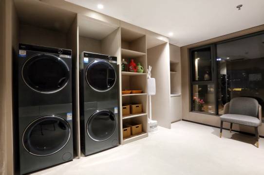 设施:自助洗衣房,设备高效,1小时就把衣服烘干好了!
