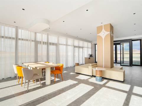 酒店的位置非常好,在进入县城的第一个路口上,门前空间宽敞,停车很方便。酒店的设施很高档,氛围很温馨,制氧机、加湿器、加热坐便器一应俱全,功能完善,使我们度过了一个美好的夜晚。前台服务人员,热情洋溢,待人亲切有礼,使我们如沐春风,留下了美好的印象。