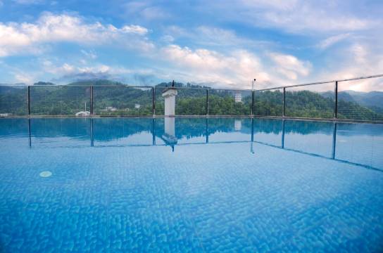 楼顶的泳池不错,水很清澈,还有躺椅,酒店对面的江水很绿,房间很大,房间设施可以语音控制,马桶是智能的