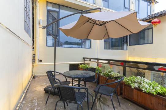民宿的位置就在景区的最中心位置,坐在窗边,可以看到大榕树,水车,夜景一览无余。再讲讲民宿自身的环境,房间真的好大,公共区域不但宽敞,而且舒心,最满意的就是民宿夜景,美
