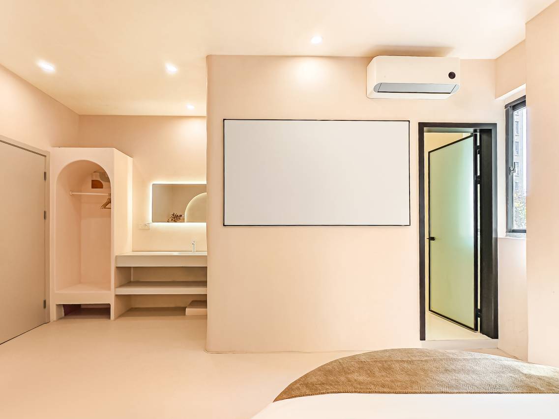 新装修的、老板热情周到,还很细心。吹风机还是徕芬的。马桶也很智能