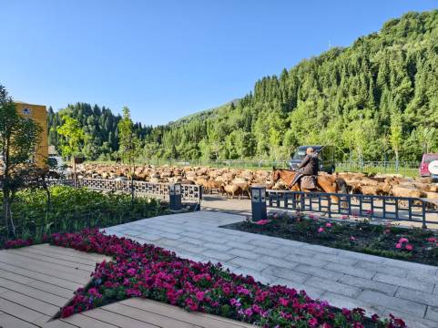 酒店设施环境卫生服务都非常好,干净整洁的房间,舒服的床垫,一觉睡到大天亮。中午酒店经理亲自上菜,让我们体验宾至如归的感觉,饭菜非常可口。早餐品种也很丰富,有新疆特色的奶茶,也有小米粥,有热菜,凉菜,有花卷,包子,馍馍,还有新疆特色的面点。北面房间可看皑皑雪山,南面房间满眼郁郁葱葱,还有可爱的前台小妹妹,会介绍朋友再来的,谢谢你们